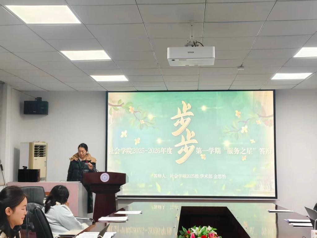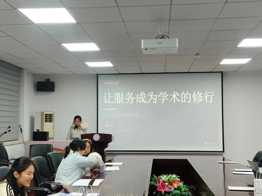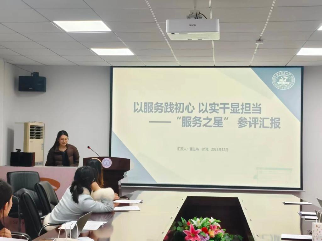 各部门述职之后,正式开始2025年秋季学期公司研究生会“服务之星”评选工作。经自主报名,最终确定13名研会成员参与评选,每人分别进行了3分钟的自我陈述与答辩。参评同学既详细回顾了本学期在部门岗位上的履职细节与工作实效,也坦诚剖析了自身工作中的难点与短板,展现出研会成员求真务实、勤于反思的精神风貌。此次评选是对研会成员的一次激励与启发,旨在树立服务榜样,凝聚服务合力,激励大家在后续工作中以更饱满的热情、更扎实的作风履职尽责、共同进步。