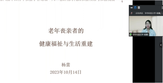 betway西汉姆联官方网站副教授杨蕾作了题为《老年丧亲者的健康福祉与生活重建》的报告,她指出与其他国家相比,中国的丧亲丧子者面对的创伤更具挑战性和摧残性,子女离世使得中国家庭不仅要面临家庭结构缺失、家庭关系颠覆和家庭功能受损的情况,还会使该群体的社会关系、社交网络遭受破裂,该群体也将永久性地处在社会结构不可逆转的边缘地位。她从丧亲哀伤相关的理论与模型有经典的依恋理论、假想世界理论和意义重建视角出发,针对老年丧亲者的意义与生活重建提出了基于结构化视角下的双程模型。