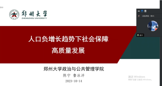 郑州大学陈宁副教授作了题为《人口负增长趋势下社会保障的高质量发展》的报告。针对目前“代际供养失衡”现状,我们需要推进适应人口结构变化的改革,并前瞻性地做好制度安排和思维转变,从而实现社会保障高质量发展。他提出四点政策构想:首先,构建家庭政策板块减轻人口负担;其次,制定调试性政策,推进社会保障制度运行要素的改革;再者,制定前瞻性政策,推动劳动力负增长挤压下的社会保险关系改革;最后,制定均衡性政策,提升社会保障制度的区域均衡度。