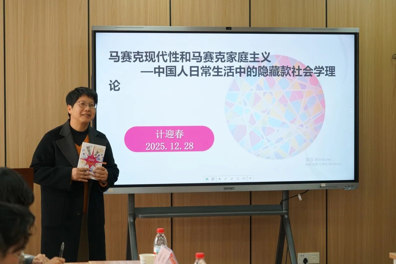 上海大学计迎春老师以“马赛克现代性和马赛克家庭主义——中国人日常生活中的隐藏款社会学理论”为题,介绍了这一本土化理论的构建历程。该理论聚焦传统与现代的杂糅共生,通过十几年的深耕与多轮修改,既保持学术深度又兼顾大众可读性,为解读中国家庭转型提供了新框架。其核心观点强调当代中国家庭呈现双系双轴多核的马赛克特征,传统与现代并非对立而是有机镶嵌。