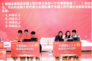 8支晋级队伍进行1v1抢答对决,答对一题计1分,提前抢答、答错或10秒内不作答对方队伍计一分。最先获到5分的队伍进入下一轮,否则被淘汰。在这一轮中,社保支部“至上励合队”与机械二队同组对决,队伍成员积极作答,全力应战,但由于成员对抢答器使用方法不熟悉等原因,出现了较大失误,未能进入下一轮。
