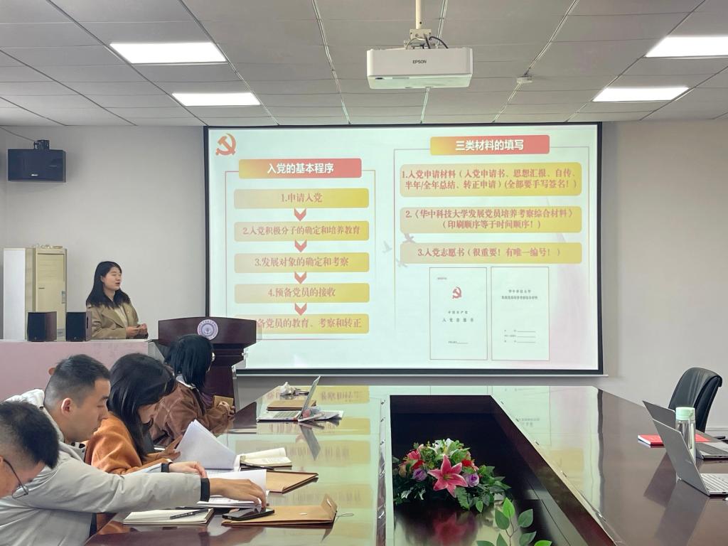 会议第二项议程为技能培训学习。党委组织部助理阳乐围绕党员发展全流程规范、材料填写要点及审查要求开展专项指导。本次培训首先明确了整体框架,从制度依据、基本程序、材料填写三方面展开,其中党员发展基本程序划分为申请入党、入党积极分子的确定和培养教育、发展对象的确定和考察、预备党员的接收、预备党员的教育考察和转正五大阶段,并且重点规范了入党申请的核心材料。最后,阳乐强调材料需理清时间逻辑、内容无空白,审查重点核实程序合规性,并要求各单位持续重视规范工作。