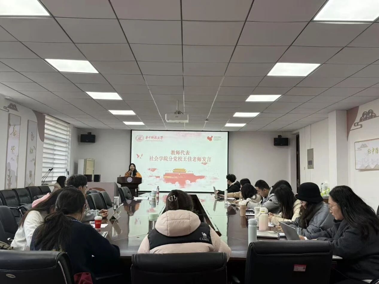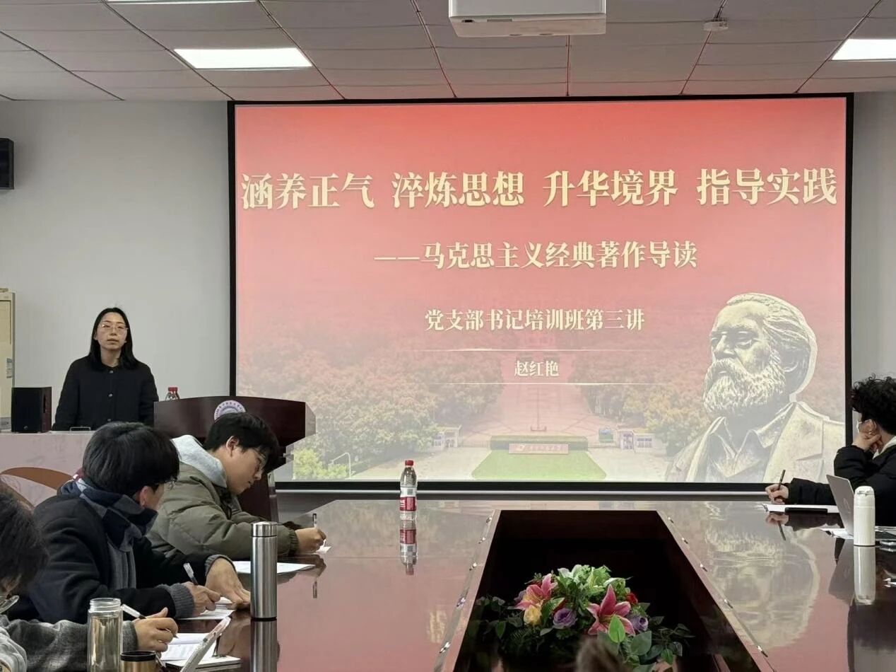 赵红艳老师以马克思主义经典著作《共产党宣言》为核心开展了授课,说明了学习经典著作的意义,并结合毛泽东同志因《共产党宣言》确立信仰的案例,解读了著作核心内容。与此同时,她强调要牢记习近平总书记对青年的要求,勉励社科专业党员要“有立场、懂理论、会实践”,将家国情怀融入支部日常工作。