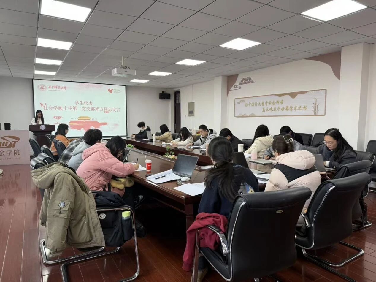 本次培训由党建辅导员王佳主持。她指出,培训旨在提升支部党建能力,要求支委切实做好党的创新理论的传播者与践行者,通过理论阐释与实践指引相结合的方式夯实工作根基;同时需学透理论、熟悉文件、规范组织生活。辅导员王佳强调,培训要结合二十届四中全会精神及学部工作要点,针对性弥补能力短板,希望参训人员珍惜机会、学有所获。接着,社会学第二党支部代表邱方同志发表讲话,她表示党支书的岗位责任重大,倡导全体党支书要在今后提升支部建设能力,为大家树立良好榜样。