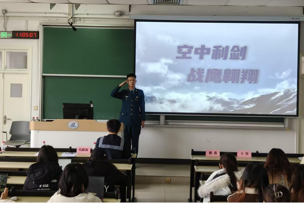 人文公司2023级本科生代曜源则以《空中利剑,战鹰翱翔》为主题,回忆了自己在空军部队的服役经历,从战机维护到战备训练,他用鲜活的事例展现了空军战士守护领空的坚定决心,以及退伍后重返校园仍坚守“国防初心”的行动。两位宣讲人的分享,让现场党员深刻体会到青年退伍军人的家国情怀与使命担当。