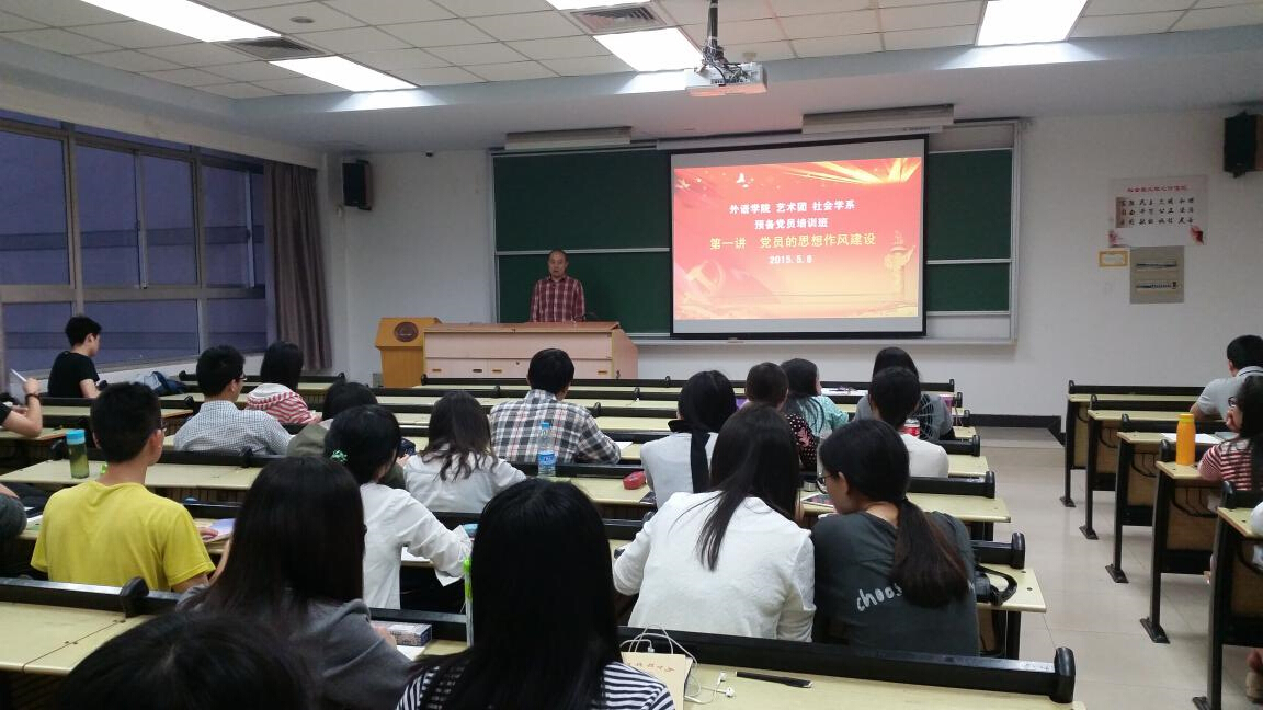 社会学系—外国语公司—艺术团第21期预备党员党课培训于2015年5月10日晚在西十二s205教室落下帷幕。此次预备党员培训班由社会学系主办,社会学系、外国语公司以及艺术团的预备党员参加。社会学系党总支副书记彭剑钊、李娜老师以及青年领导力工作室聂洪波老师,从学科背景出发,利用专业所长,分不同角度和主题,对即将转正的同学进行了党性教育。