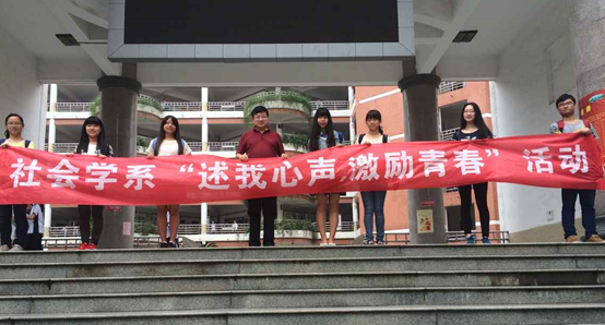 5月15日,公德长征活动的第四站,社会学系的志愿者们来到了水果湖第二中学,进行了“述我心声,激励青春”的主题宣讲会。在这次宣讲会中,志愿者们从学习经验、心路困惑和老员工活等多方面向这里初一五班的同学阐述了自己的青春历程。