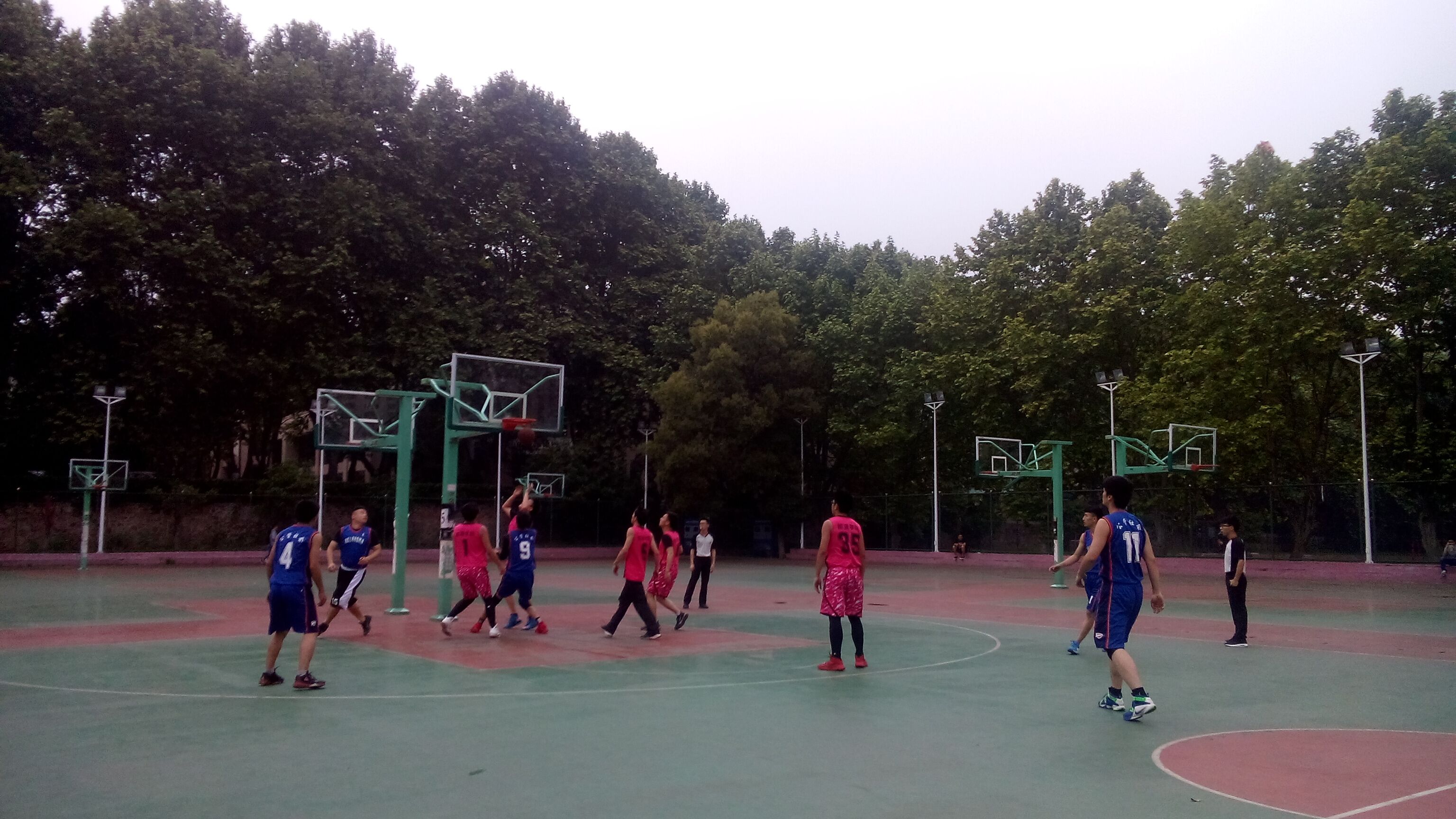 4月26日中午12点30分在中操场篮球场举行男篮社会学公管联队对战能源公司的比赛。虽然天气仍未放晴,场地条件不佳,但是双方队员摩拳擦掌,跃跃欲试,热情涌动。比赛前,双方球队认真布置规划战术。前来加油助威的同学聚精会神,拭目以待。能源公司来势汹汹,社会学公管联队配合默契,多次阻止了能源公司的进攻。双方比分一度不相上下。在胶着的比赛中社会学团结一心,全体队员机动灵活,抽空站位,严防死守,全力以赴争取进球。比赛精彩纷呈,现场气氛热烈,每一位参赛者和观众都觉得畅快不已。最终,社会学公管联队以48:38战胜能源公司,不负期望,取得最终胜利。赛后,双方球员秉着友好精神握手,感谢对方磨砺自己的球技。