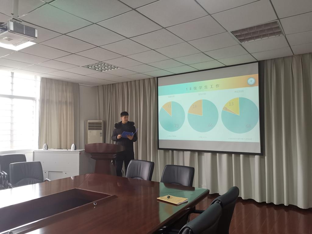 学工组各位辅导员首先对2018年度员工工作进行了汇报,从旗下产业管理、研究生教育管理、员工党建、团建、资助、心理健康、就业等各个方面对一年的工作进行了梳理,总结了特色亮点,也反思了不足,并对2019年工作提出了目标。