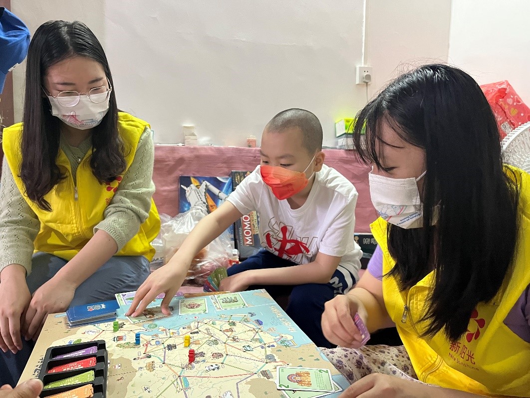 在这个儿童节,志愿者们真正来到了患儿身边。这不仅增进了彼此的感情,也促进了志愿者和孩子们相互了解,便于在后续的线上教学中,更有针对性地运用社会工作服务技巧,为患儿赋能、陪伴他们成长。