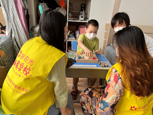 瑞瑞是张睿、田雨诺和宋文茜志愿者辅导的小朋友。看到常常在电子设备屏幕出现的志愿者老师,瑞瑞眼神流露出惊喜。瑞瑞和志愿者们一起玩喜欢的跳棋、连连看游戏。
