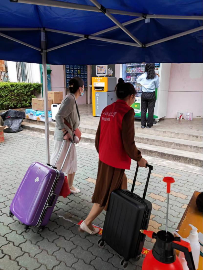 志愿者孙钵权、李明达在沁苑校车点为新生搬运行李时,发现一位其他院新生的行李遗落在了校车上,他们立马在最短的时间内与该新生取得联系,并一直在校车点等待新生回来,将其行李安全归还。