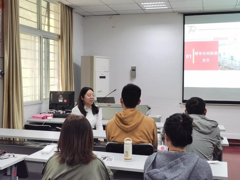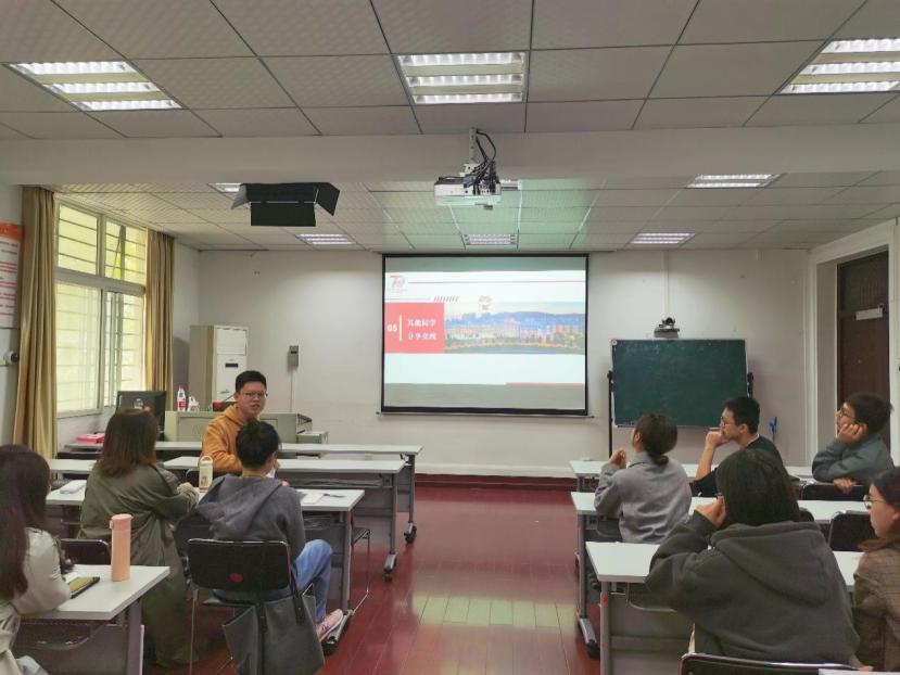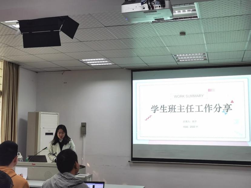 其次,助管代表邱芊分享交流。她从班主任工作和助管工作两方面入手,对前两个月的工作进行总结。在分享中她向我们展示了“细心”二字如何渗透到新生班主任各项工作当中——大到班委选举,小到日常跟课,都体现了邱芊同学对班主任工作的深入思考和积极行动。同时,她还对自己后续的工作计划做出了更深入的规划,鼓励大家在工作过程中积极思考、反思提升。