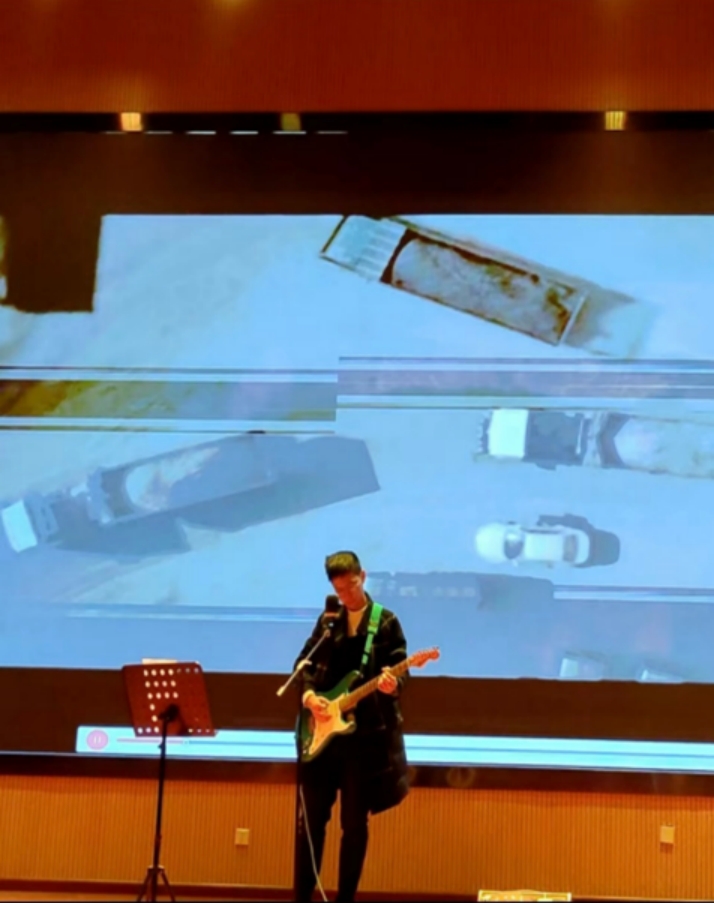 “海浪无声将夜幕深深淹没,漫过天空尽头的角落。”物理22级天眷班张钧科同学悠扬的笛声中传来些许哀伤都情绪,但也让我们更加清醒。人其实都像是海里的一条大鱼,而生活就像穿越大海,与不同的人相遇,亦需要分开,但总要努力向海都那边奋斗,怀着走到海岸尽头去看看的梦想,去找寻属于自己的世界。