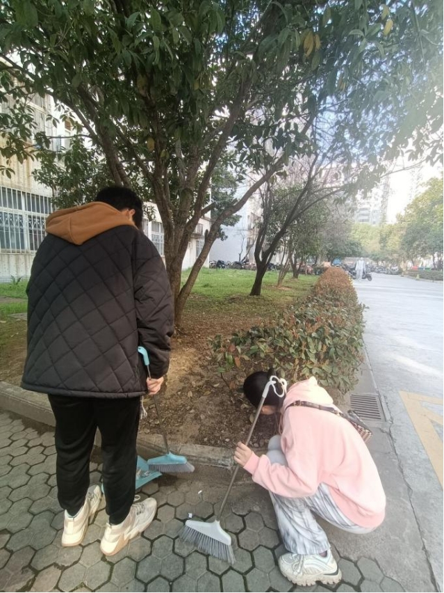 打扫后的紫菘片区整洁干净,焕然一新。三月的枝头新绿不仅投影于阳光中,志愿者们疲惫但开心的面容也被投影在合照中。经过这次“花开祛尘,心暖同行”的学雷锋活动,希望雷锋精神可以在同学们的心中传承,成为一面永不褪色、永放光芒的旗帜。