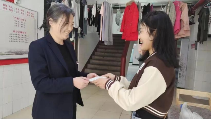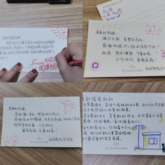 制作完成后,同学们向紫菘员工公寓的宿管阿姨,保安叔叔,以及食堂的工作人员送去明信片和小礼物,送去社会学子的温暖与祝福。忠心祝愿在平凡岗位上默默付出的工作人员万事顺意,身体安康。