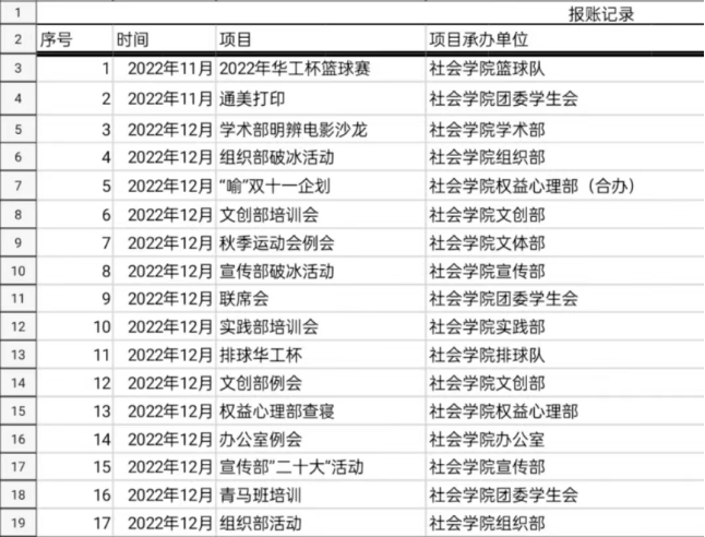 2022年9月至今,办公室负责团委员工会各部门的活动报账共计19笔,为各项活动的顺利完成提供了支持。