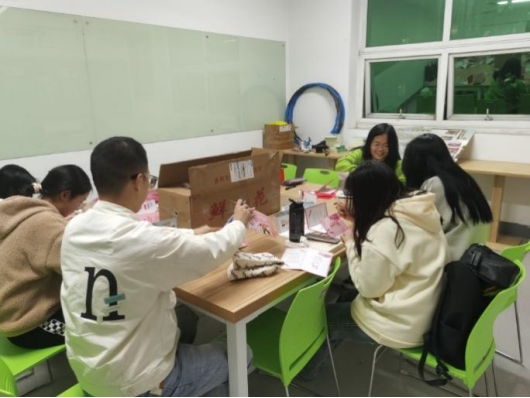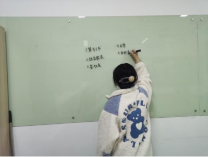 2023年3月5日晚,权益心理部的成员们齐聚七栋三楼公用房,大家各抒己见,分组进行“女生节”祝福卡片的绘制与书写。之后,部员们来到二栋公寓,在每一个宿舍门上贴上精心准备的贺卡与花束。卡片凝聚浓浓心意,花朵洋溢满满祝福。