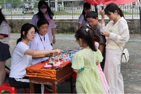 上午8时30分,义卖活动如期开始。开摊没多久就有同学陆陆续续来到摊位前观察询问,其中文创产品、手工制品最为受欢迎。在志愿者细心地介绍下,很多同学纷纷表示愿意为公益献出爱心。与此同时,同学们也纷纷在横幅上留言,诚挚祝福那些需要关注和帮助的孩子们。除了同学,现场还有很多家长和小朋友也来到了我们的摊位,他们积极地参与到活动中,一起传递希望的光。