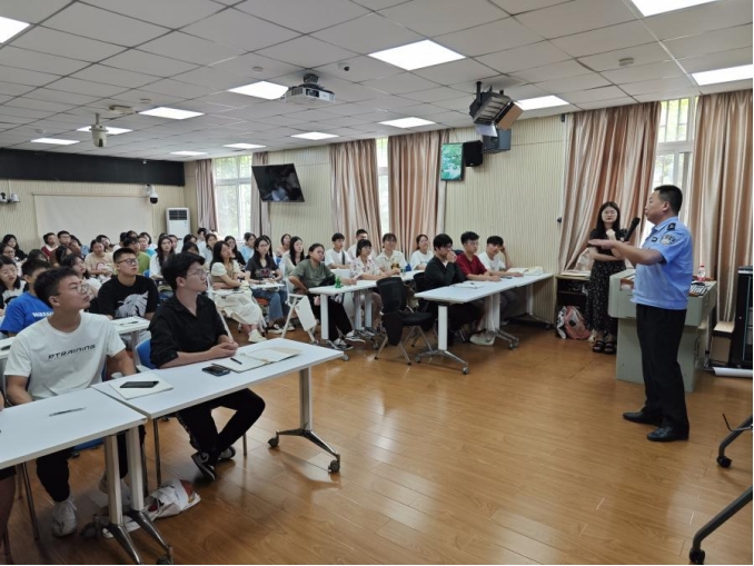 随后,熊警官用风趣幽默的语言具体介绍了防骗的多种方式,全面讲解当前主要的诈骗手段,如冒充“公检法”人员、淘宝客服进行诈骗。他提醒同学们,谨慎对待陌生电话、不要随意点击不明链接,提高防范意识,时刻注意维护财自身产安全。