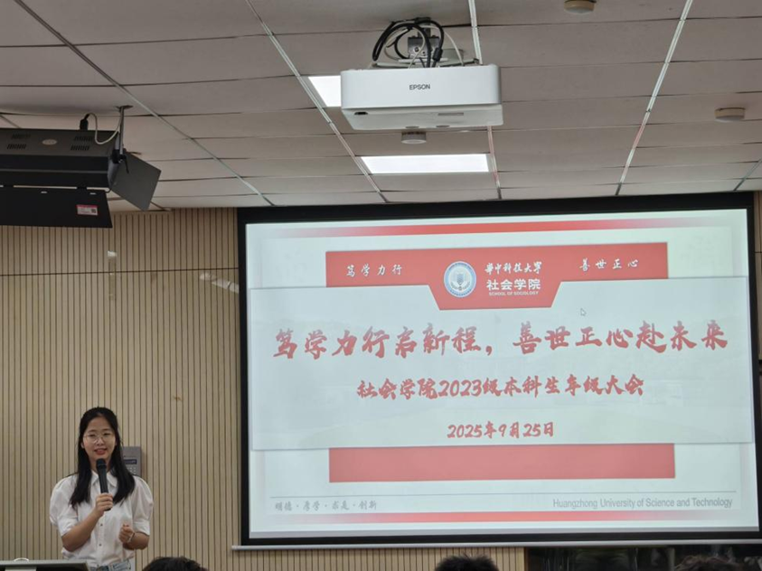 9月25日下午,2023级本科生年级大会在东七楼321室顺利举行。本次大会以“笃学力行启新程,善世正心赴未来”为主题,紧扣大三学年“规划关键期、实践攻坚期”的核心特点,聚焦实习、升学、就业三大核心需求,为同学们提供精准指导与全方面支持,助力大家在新学期锚定目标、提升自我,为未来发展筑牢根基。会议由兼职辅导员傅佳宁主持。