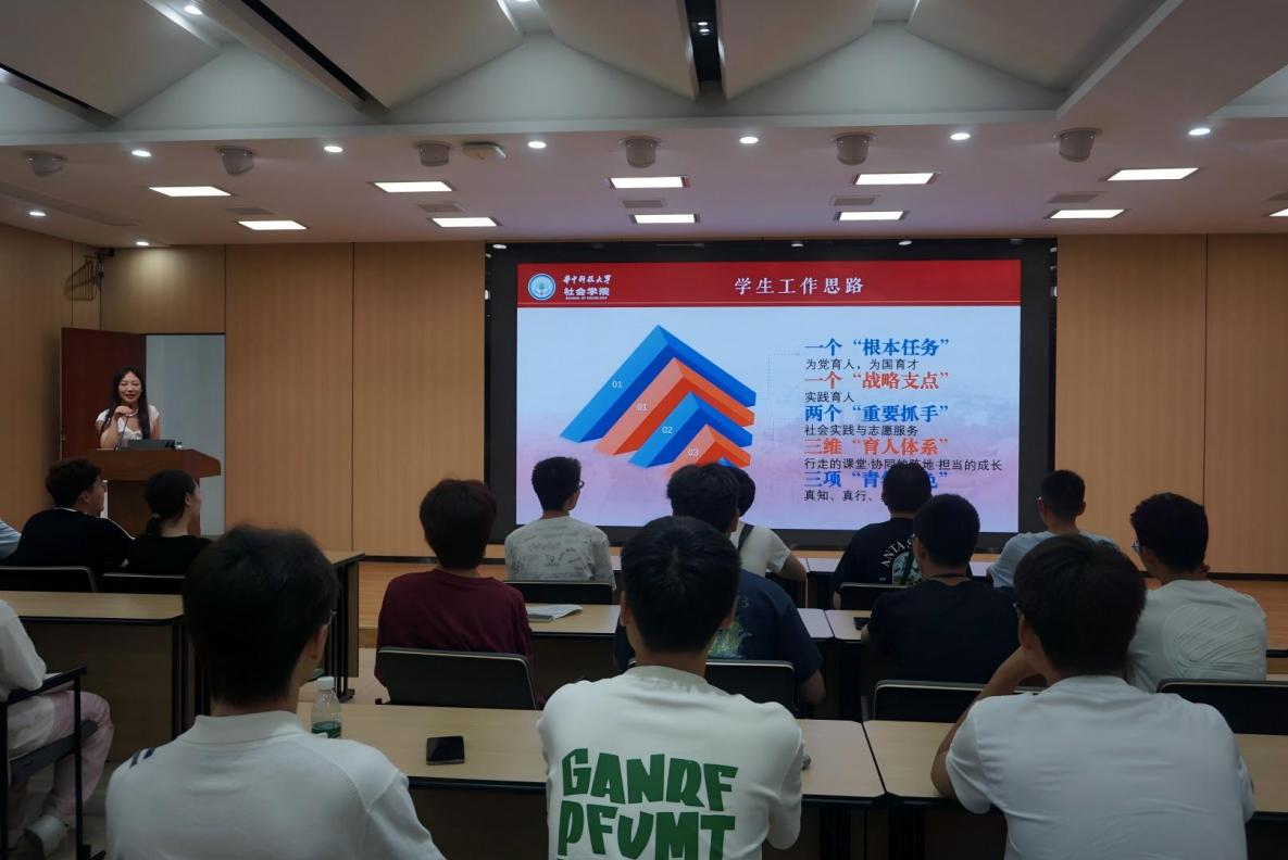 大会伊始,本科生辅导员岐尚鲜以温润而有力的致辞欢迎新生,并结合自身经历阐述育人使命与培养理念,迅速与学子建立深厚联结。为帮助新生尽快融入集体,大会介绍了公司基本院情与学工架构,为同学们后续学习生活的顺利开展奠定基础。