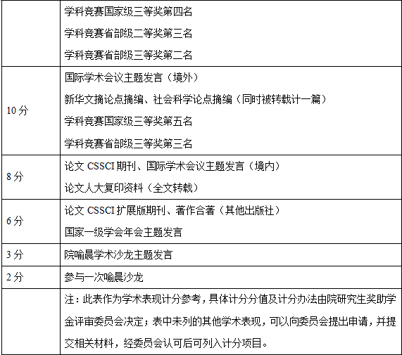 学术表现包括论文或著作发表情况、学术会议参与及表现情况等。学术表现得分以60分为上限,累计得分超过60分的计60分。(2015年9月后发表的作品需署有betway西汉姆联官方网站)