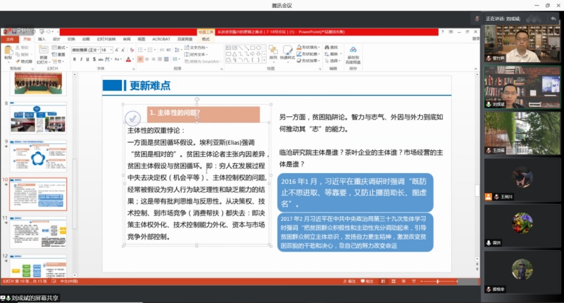 王茂福教授对上述研究中“就业减贫与创业减贫之间的辩证关系”“底层如何创造社会财富”等观点表示赞同,并就部分疑问与发言人进行了进一步交流讨论。