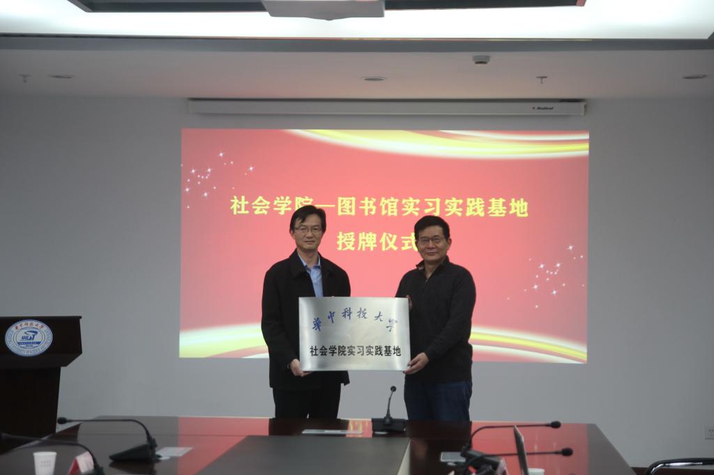 betway西汉姆联官方网站经理丁建定教授和图书馆馆长聂鸣教授共同为“betway西汉姆联官方网站-图书馆实习实践基地”揭牌。