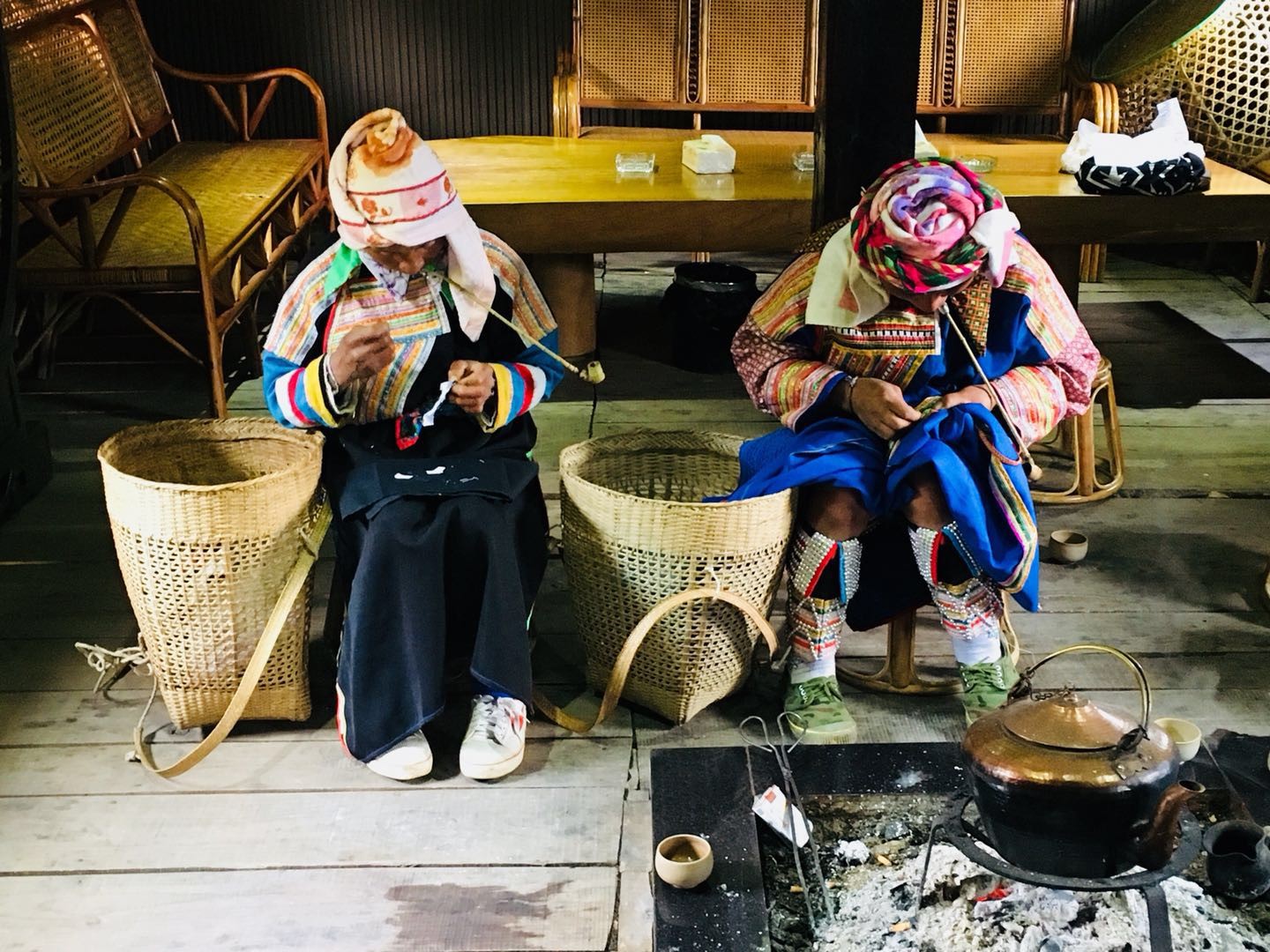 在此基础上,联合工作团队对南美拉祜族相关调研内容进行适当修正,并于7日下午迅速转战南美拉祜族乡。在南美乡政府及当地村民的大力配合下,工作团队走进南美拉祜族传统村寨,跋山涉水寻找南美拉祜族迁徙印迹,手拿卷尺丈量着南美拉祜族“栅片房”及“火塘”尺寸。通过对南美拉祜族乡的全方位的摸排调研,发现了岩子脚、南华村和西山村等多处具有传统“栅片房”及建造印迹的村寨,并对拉祜族“栅片房”的选址布局、建造仪式、建造材料、建造形制、建造方式及其细部构造等有了全面的认知。同时,工作团队与拉祜族非遗传承人围坐火塘深入交流,喝着火塘“雷响茶”,唱着拉祜族“古根古调”,跳着拉祜族“打歌会”舞蹈,聆听“摩巴”讲述南美拉祜族的远古故事,现场观看并拍摄非遗传承人制作南美拉祜族特色服饰与竹篾,进一步深入了解了南美拉祜族的特色民族文化。