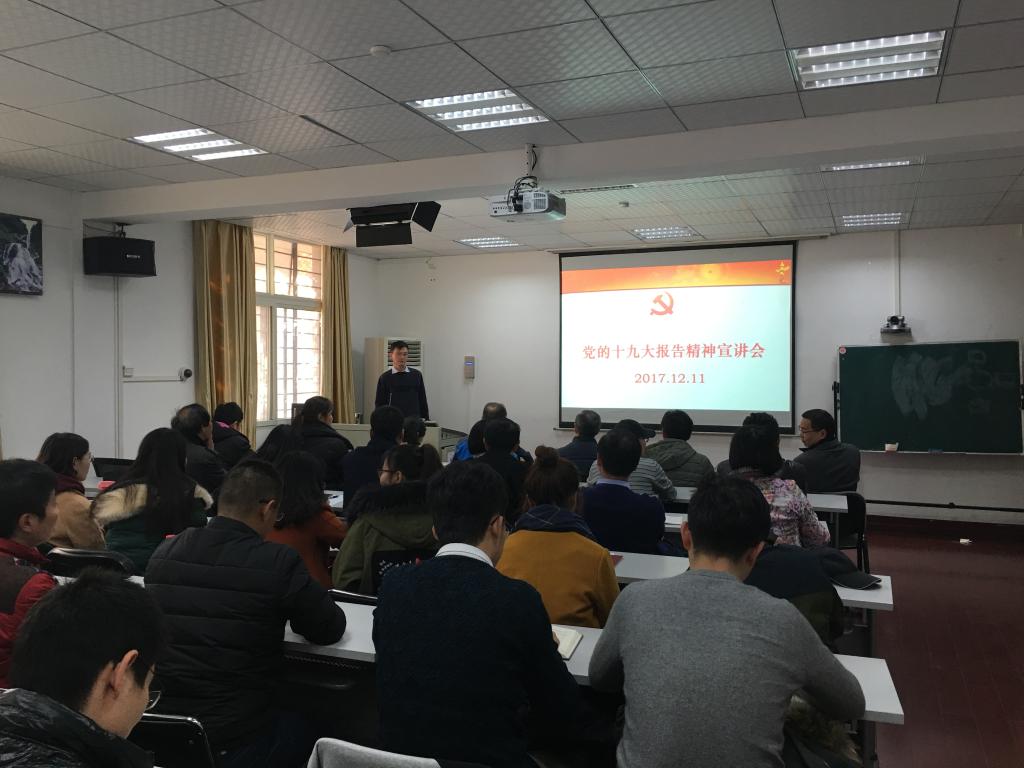 (通讯员 徐星星)12月11日下午,betway西汉姆联官方网站于东七楼501会议室举行党的十九大报告精神宣讲报告会,经理丁建定为全体在校教职工及部分员工党员作宣讲报告。
