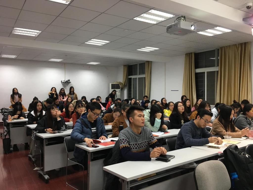 雷雨同学首先为大家讲解了关于“新时代”的学习感悟。他首先介绍了十九大大会的基本情况,并对十九大报告进行解读,提出了大会中新时代的论断,解释了何谓新时代的问题,并阐述了如何进入新时代的十四条方略,以习近平总书记、国家主席出席在越南岘港举行的亚太经合组织第二十五次领导人非正式会议为例,分析说明了我国外交舞台的新时代。通过对秦玥飞和汪潮涌的对比,雷雨用自己的故事和大家探讨了新时代下的青春担当。来自鄂西北基层的他放弃了中国银行优越的工作,选择继续深造并想回乡建设,他用一句话作为结尾“只要有希望,便有可能”,赢得了全场经久不息的掌声。