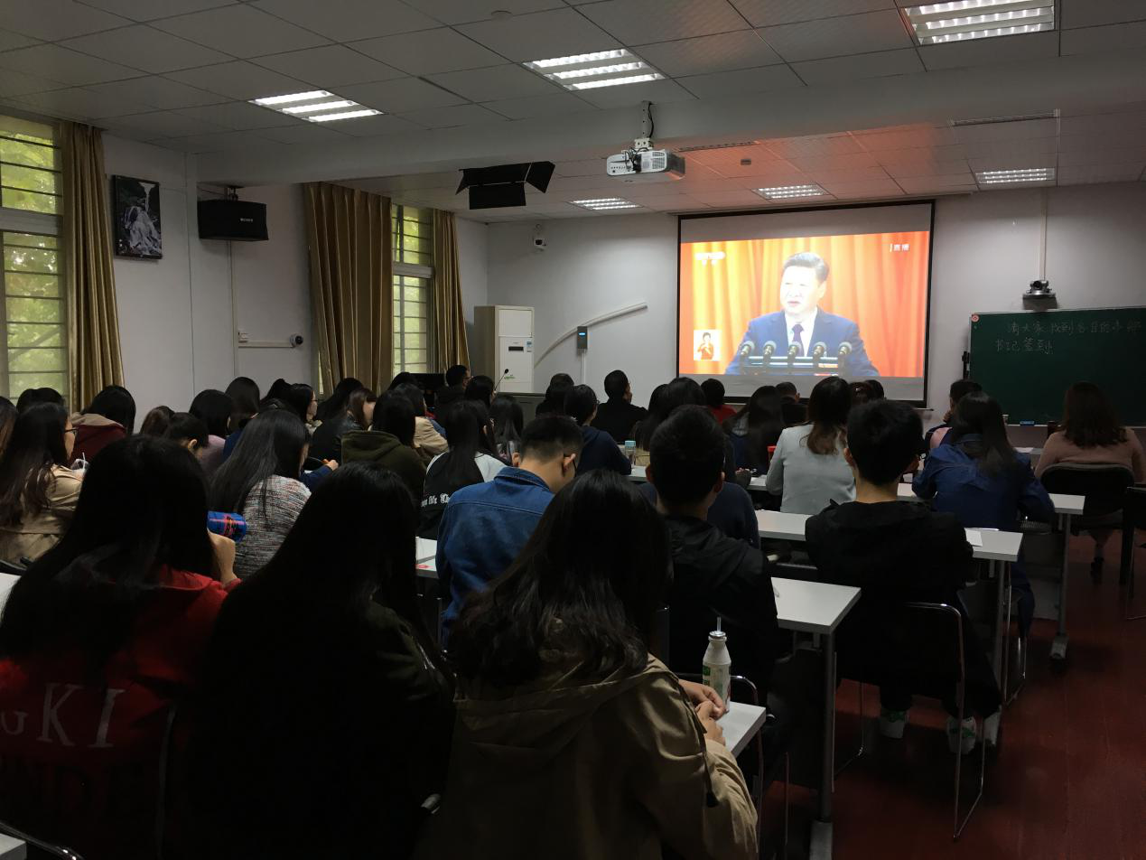 2017年10月18日上午9时,betway西汉姆联官方网站组织在东七楼501教室观看中国共产党第十九次全国代表大会开幕会直播,全体研究生党员及教职工党员参加。