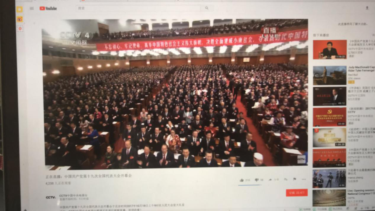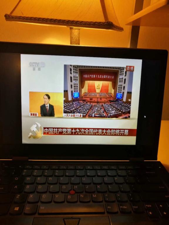 赴美访学柯卉兵老师通过网络观看党的十九大开幕会