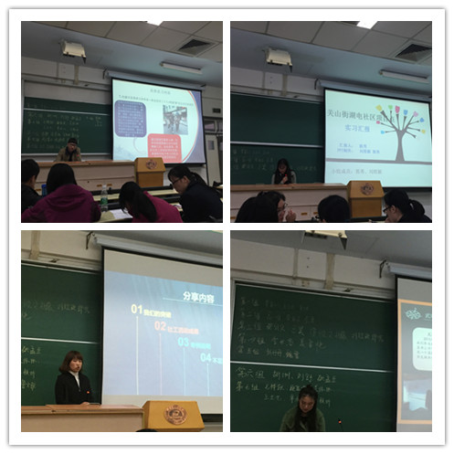 汇报会分14个小组进行,各小组分别就自己在社区、公司、医院等机构的实习情况做出详细汇报,与会老师认真听取汇报成果并肯定员工们在实习过程中积极思考,勇于探索实践的精神,同时,也指出社工实习中出现的问题和不足。