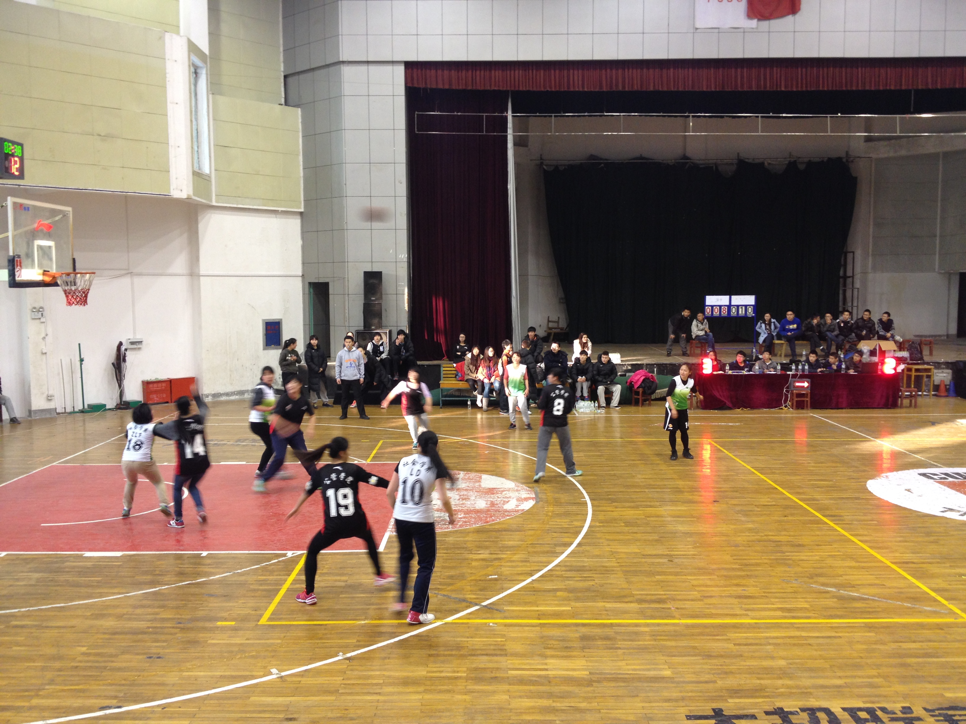 第二节,公管女篮进行人员轮换,换上了另外两个校队队员,同时对罗艳进行一对一的全场紧逼,限制罗艳运球过半场。面对身体素质强悍的对手,罗艳有些无奈,好几个回合都出现了失误,公管女篮抓住机会将比分反超。社会教练朱江迅速叫了暂停,布置运球战术,通过刘丹的上前配合成功化解了这次运球危机。但公管女篮的“车轮战”大量消耗了罗艳的体力,身高的劣势也限制了她的发挥。反观公管女篮,她们凭借身体素质优势,强行炮轰社会女篮内线。半场结束,比分定格在25:30,社会女篮落后5分。