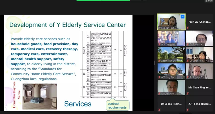 10月14日,公司教师罗艳、刘成斌受邀参与了新加坡国立大学东亚研究所主办的积极健康老龄化(新加坡&中国)研讨会(Workshop on Active and Healthy Ageing in Singapore and China)。在会上,罗艳老师基于《一个专业社区养老服务平台的形成和转型》进行学术汇报。