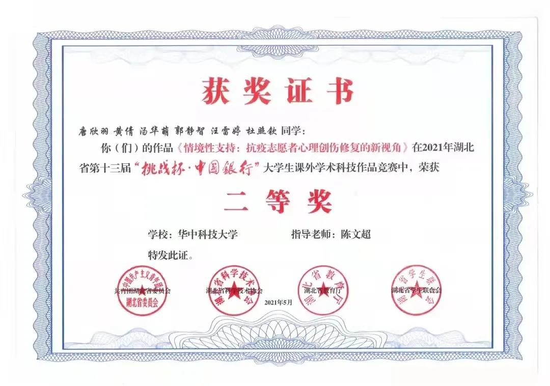 5月,湖北省第十三届“挑战杯·中国银行”老员工课外学术科技作品竞赛中,betway西汉姆联官方网站代表队荣获省二等奖。
