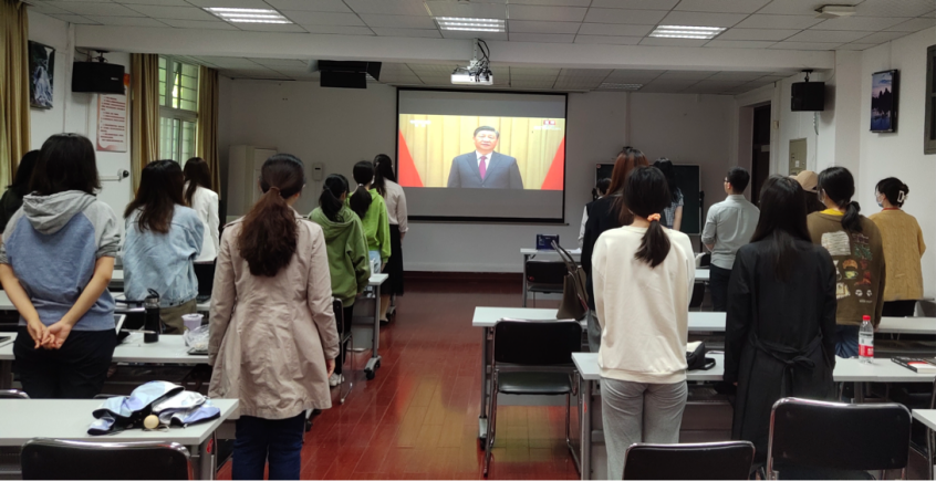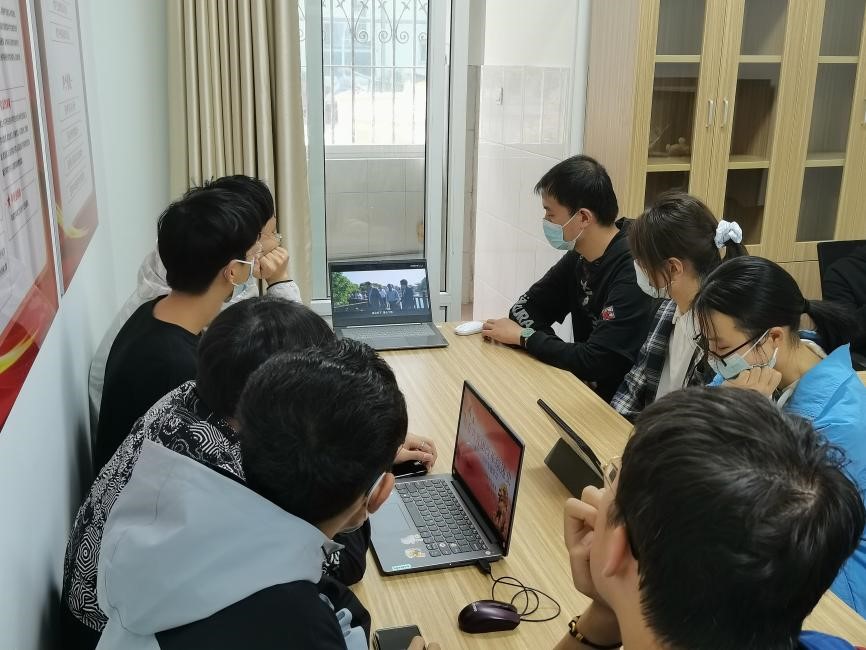 随后,与会人员一同观看庆祝中国共产主义青年团成立100周年大会现场直播,跟随大会直播共唱国歌,学习习近平总书记重要讲话。