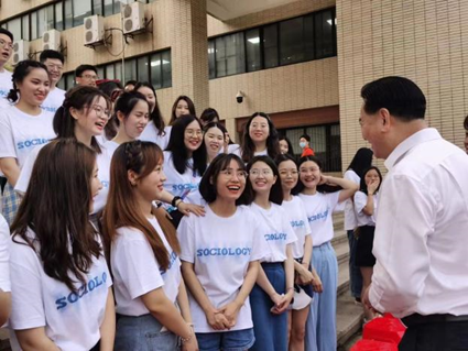 拍摄结束后,元元书记并未离去,他起身面向同学,与毕业生们亲切握手,关心大家的未来发展,并送上毕业寄语: