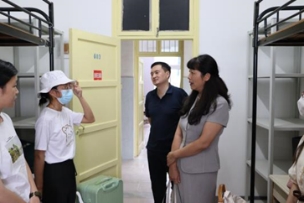 随后,公司党委书记肖莉、副书记杨飞、本科生辅导员朱江前往新生宿舍,与紫菘二栋宿管阿姨交流,了解报道情况。并走访员工宿舍,为社院新生送去关心与温暖。