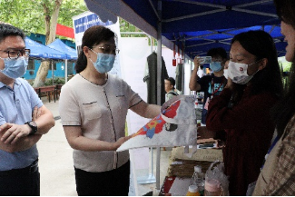 (肖莉书记、杨飞副书记、朱江辅导员与宿管阿姨交流)