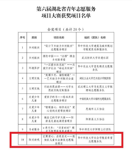 第六届湖北省青年志愿服务项目大赛决赛于9月17日顺利举办。公司“汇聚爱心,启亮星光”——孤独症儿童社会康复志愿服务项目(以下简称项目),在比赛中表现优异、脱颖而出,最终荣获第六届湖北省青年志愿服务项目大赛金奖!