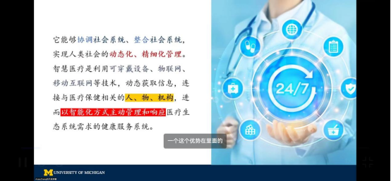 随后,张安翱老师将智慧医疗的服务对象分为三大类:临床/科研机构(如医院)、区域卫生决策机构、个人或家庭用户。而根据不同需求,智慧医疗可应用于六个核心领域,如协助诊断和治疗、健康管理、疾病预防和风险评估、远程(康拟)助手、智能医院以及协助药物研究等。张安翱老师指出了社会工作者这些服务领域中能够发挥的核心职能和启示,强调了社会工作者的全人视角和人在环境中的理论取向的优势。