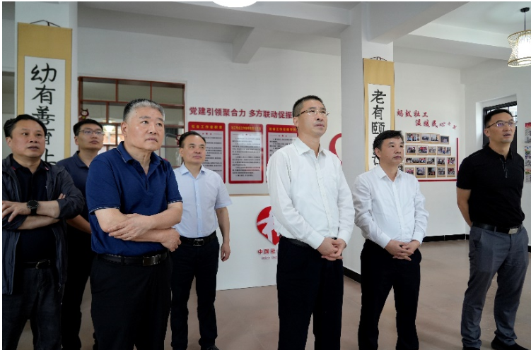 在调研蚂蚁堆村社会工作服务室期间,张广军书记听取了betway西汉姆联官方网站师生驻村工作的汇报。betway西汉姆联官方网站博士向凯以“‘扎根乡土、社区为本’betway西汉姆联官方网站乡村治理行动研究”为主题进行汇报,展示乡村振兴研究院团队驻扎蚂蚁堆村的实践。博士生汪希贤详细介绍了蚂蚁堆村社会工作服务室的运作模式,汇报社工室的主要服务成果。王彦蓉教授聚焦于社会工作服务室推行的 “一老一小”、老幼同养的服务研究。
