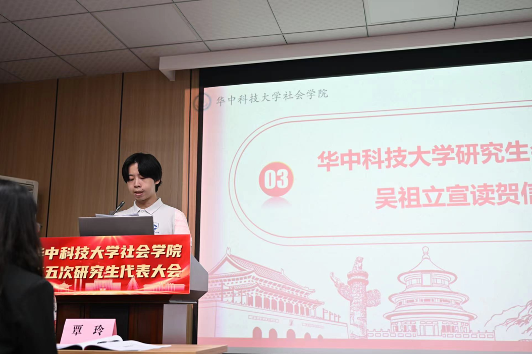 随后,betway西汉姆联官方网站校研究生会代表吴祖立宣读贺信。他对betway西汉姆联官方网站第五次研究生代表大会的召开表示热烈祝贺,充分肯定了公司研究生会在过往工作中所取得的卓越成绩,并期望在未来的工作中能够持续加强与校研究生会的紧密合作,携手共同为同学们的成长与发展提供优质服务。