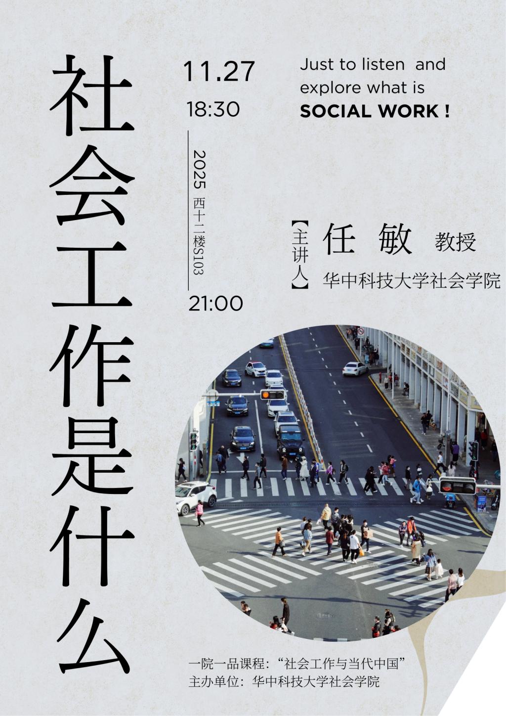【讲座预告】一院一品课程“社会工作与当代中国”第七讲