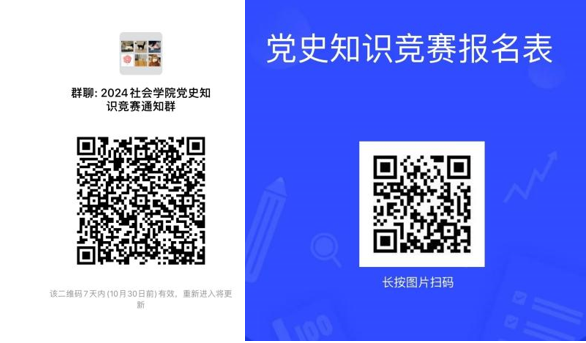 扫描下方左侧二维码加入微信群,并扫描右侧二维码填写报名表视为报名成功。后续通知将在微信群内发布。报名截止时间为10月31日22:00。