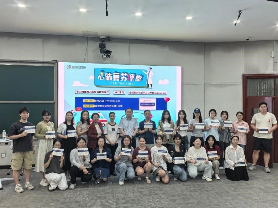 随后,员工们分组在模拟人上进行CPR练习。在实践环节中,员工们在张勇医生和护士的指导下,学习了如何正确识别心脏骤停、如何进行胸外按压、人工呼吸以及使用自动体外除颤器(AED)。在张勇医生及其团队的专业指导下,每个同学通过反复练习掌握了心脏复苏的要点,掌握了正确的姿势和位置。培训结束后,所有参与的同学都进行了现场考试,考核合格的同学获得了由武汉亚心总医院颁发的“心肺复苏急救培训合格证”。