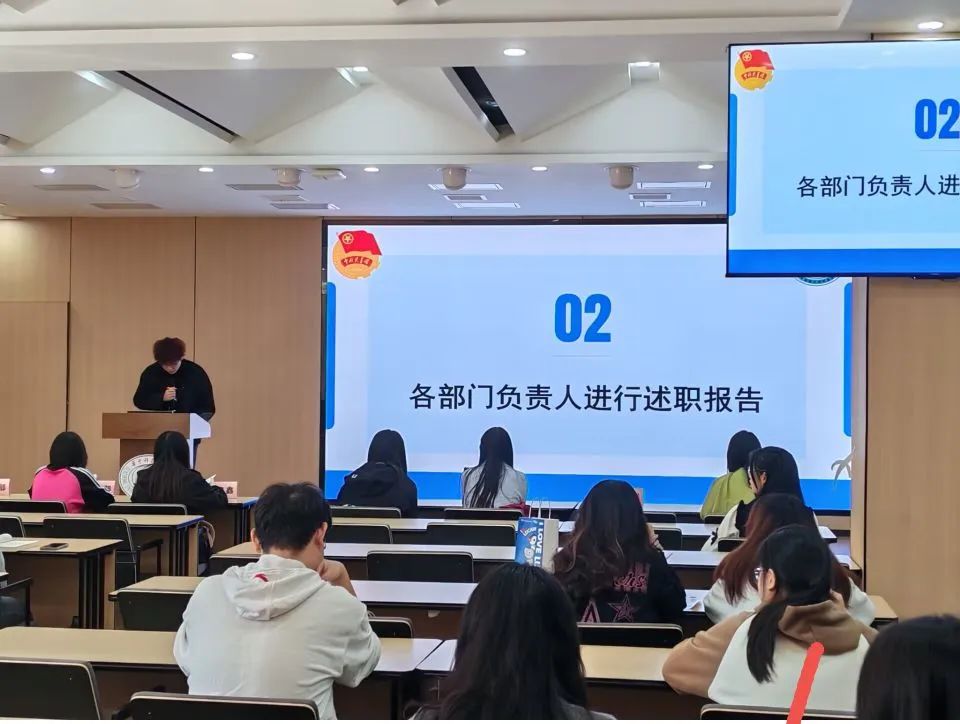 学术部在述职报告中介绍了他们的常规工作与规划展望,不管是支持毕业答辩工作还是专业飞流会的开展,学术部以严谨踏实的学术精神服务同学们,并在精益求精的工作反思中不断进步。宣传部的部长有事有未能参加这次大会,于是以视频讲说的形式进行。虽然隔着屏幕,我们仍能感受到宣传部的认真工作和丰硕成果,他们的工作涵盖院内外主题活动、青年大学习与小天运营等,他们在繁而不乱的工作中彰显了宣传部的风采。betway西汉姆联官方网站团委实践部的年度总结深入人心,实践部部长以时间为轴,将那些意义非凡又感人至深的实践活动娓娓道来。为社区老人送物资,关照华科社区内的残障人士并为他们准备生日会,满含温情的“饺子宴”......他们以实际行动做贡献,用点滴关怀积累社会之爱。